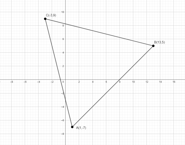 Wyznaczamy współrzędne wierzchołków trójkąta.