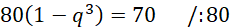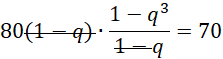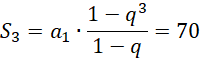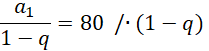 Podaj wartości pierwszego wyrazu oraz ilorazu ciągu geometrycznego, którego suma trzech początkowych wyrazów nieskończonego ciągu geometrycznego wynosi 70. Ponadto suma wszystkich wyrazów to 80.