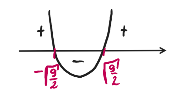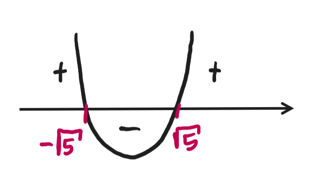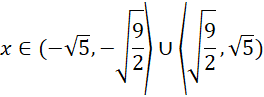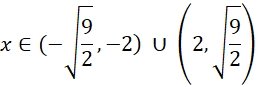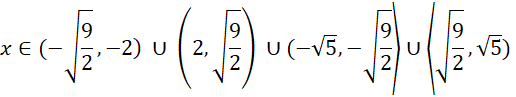 Przedziały liczbowe, kiedy x jest dodatnie, a kiedy jest ujemne: