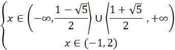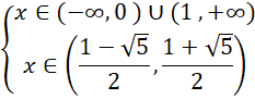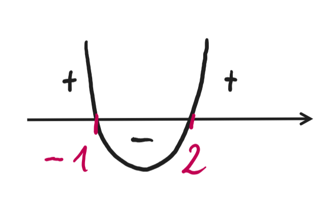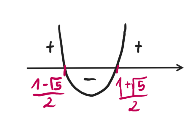 Przedziały, kiedy x jest dodatnie lub ujemne: