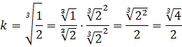 W tym przypadku musisz usunąć pierwiastek z mianownika. Jednakże pomnożenie przez ten sam pierwiastek nie sprawi, że z mianownika zniknie pierwiastek, gdyż są to pierwiastki trzeciego stopnia. Dlatego licznik i mianownik musisz pomnożyć przez kwadrat pierwiastka z mianownika, by łącznie w mianowniku był pierwiastek trzeciego stopnia do potęgi trzeciej. Wtedy dopiero w mianowniku będzie liczba naturalna.