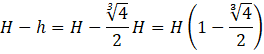 Z kolei odległość płaszczyzny cięcia od podstawy ostrosłupa to wysokość dużego ostrosłupa pomniejszona o wysokość mniejszego ostrosłupa i wynosi ona: