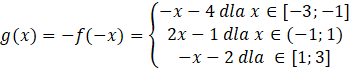 W tym zadaniu musisz naszkicować wykres funkcji , podać, jak wygląda jej wzór po przekształceniu wykresu funkcji względem punktu i naszkicować ten nowy wykres. Wyznacz również przedziały, gdzie funkcja rośnie.