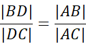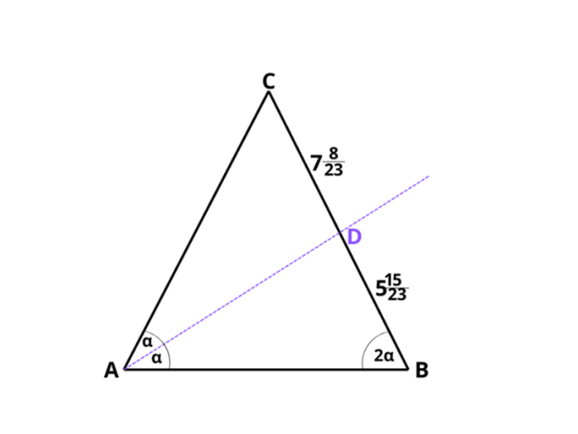Wykorzystaj twierdzenie o dwusiecznej kąta wewnętrznego w trójkącie: dwusieczna kąta wewnętrznego w trójkącie dzieli przeciwległy bok proporcjonalnie do długości pozostałych boków.