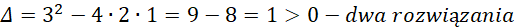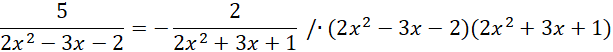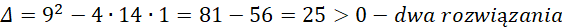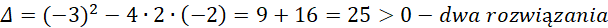 Zapisujemy założenia, a następnie rozwiązujemy je. Przemnażamy przez mianowniki i rozwiązujemy równanie równoważne, następnie porównujemy rozwiązania z założeniami i zapisujemy końcową odpowiedź.