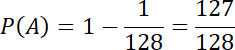 Wyznacz prawdopodobieństwo zdarzenia co najmniej raz wypadła reszka, jeśli rzucamy siedem razy symetryczną monetą.