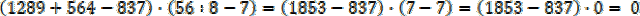 Mnożenie jest przemienne – można zmieniać kolejność czynników dla ułatwienia obliczeń, ponieważ nie zmieni to wyniku. Jeśli jeden z czynników jest równy 0, to wynik także wyniesie 0, dlatego nie trzeba obliczać różnicy 1853 – 837.