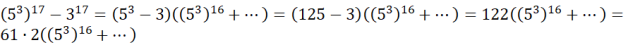 W tym zadaniu należy skorzystać ze wzorów skróconego mnożenia. Liczba przemnożona przez 61 jest podzielna przez 61.