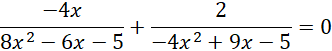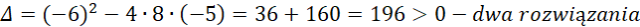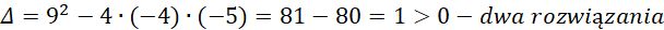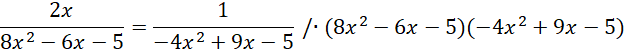 Zapisujemy założenia, a następnie rozwiązujemy je. Przemnażamy przez mianowniki i rozwiązujemy równanie równoważne, następnie porównujemy rozwiązania z założeniami i zapisujemy końcową odpowiedź.