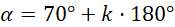 Zapisz wszystkie kąty skierowane w układzie współrzędnych, dla których ramiona znajdują się na prostych, które zawierają kąt równy 70°