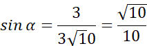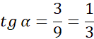W tym zadaniu podaj wartości funkcji trygonometrycznych kąta BAC = α i korzystając z tablic wyznacz, ile wynosi α. Wiadomo, że trójkąt ABC jest prostokątny, a kąt prosty znajduje się przy wierzchołku C. Długości boków AC i BC wynoszą odpowiednio 9 i 3. Wartość kąta α podaj zachowując dokładność do jedności.