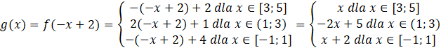 W tym zadaniu musisz naszkicować wykres funkcji , podać, jak wygląda jej wzór po przekształceniu wykresu funkcji względem osi i przesunięciu o dwie jednostki w prawo, a następnie naszkicować ten nowy wykres. Wyznacz również przedziały, gdzie funkcja rośnie.