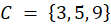 Wiadomo, że 3, 5 i 9 należy do C oraz, że C jest podzbiorem B. Ponieważ A i C są rozłączne, to C nie zawiera żadnych elementów, które zawiera A, a więc może zawierać tylko elementy 3, 5 i 9.