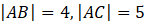W trójkącie prostokątnym ABC, gdzie kąt C jest prosty, podane są długości dwóch boków. Znajdź wartości funkcji trygonometrycznych kąta BAC, czyli kąta α, oraz odczytaj miarę kąta 𝛼 z dokładnością do 1°
