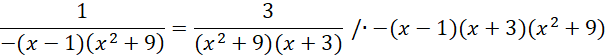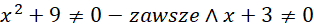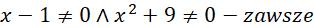 Zapisujemy założenia, a następnie rozwiązujemy je. Przemnażamy przez mianowniki i rozwiązujemy równanie równoważne, następnie porównujemy rozwiązania z założeniami i zapisujemy końcową odpowiedź.