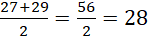 Podaj medianę zestawu liczb 31, 16, 25, 29, 27, x, jeżeli średnia arytmetyczna jest równa połowie największej z nich.
