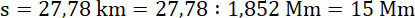 Pamiętaj, prędkość to iloraz drogi i czasu. Najwygodniej będzie nam najpierw zamienić dystans w kilometrach na mile morskie (unikniemy zamiany kilometrów na godzinę na mile morskie na godzinę), w tym celu podziel drogę w kilometrach przez wartość mili w kilometrach (Mm = 1,852 km).
