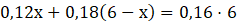 6-x – liczba kilogramów syropu o stężeniu 18%