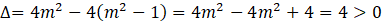 Oblicz wyróżnik równania. Ponieważ przyjmuje on zawsze wartość równą 4, więc równanie ma dwa rozwiązania niezależnie od wartości parametru m.