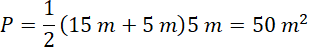 . Głębokość kanału jest taka sama jak szerokość dna kanału i wynosi 5 m. To znaczy, że wysokość trapezu oraz krótsza podstawa mają po 5 m, dłuższa podstawa będzie mieć 15 m – buduje ją długość odpowiadająca krótszej podstawie, oraz dwa ramiona trójkątów równoramiennych prostokątnych.