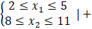 Tworzą one kwadra o wierzchołkach w punktach: (5, 1), (8, 1), (5, 4) i (8, 4).