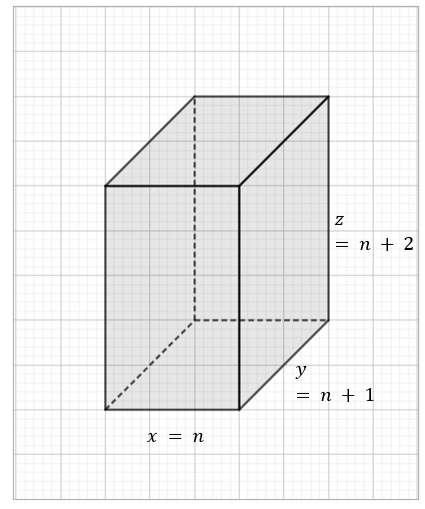 Na podstawie treści zadania tworzymy pomocniczy rysunek przedstawiający prostopadłościan z odpowiednio oznaczonymi bokami. Na podstawie pola całej powierzchni bryły układamy równanie kwadratowe, z którego wyznaczamy naturalną wartość n. następnie określamy stosunek pola największej ściany i najmniejszej.