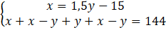 x = 1,5y – 15 = 1,5 ∙ 54 – 15 = 81 – 15 = 66