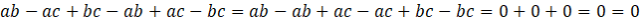 a(b – c) + b(c – a) + c(a – b) = 0