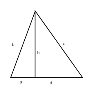 Skorzystaj z warunku budowy trójkąta, aby określić długości sum a + b i c + d przez h.