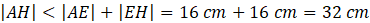 W sześcianie ABCDEFGH o krawędzi długości 16 cm wyznaczono trójkąt ACH. Czy suma długości jego boków jest większa niż 1 metr? Odpowiedź uzasadnij.
