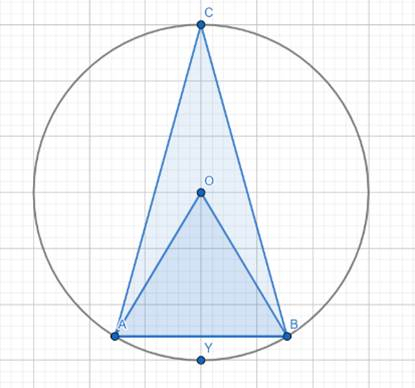 Wykaż, że kąt środkowy ABO jest równoboczny, jeżeli trójkąt ABC ma kąty przy wierzchołkach A i B równe 75° każdy.