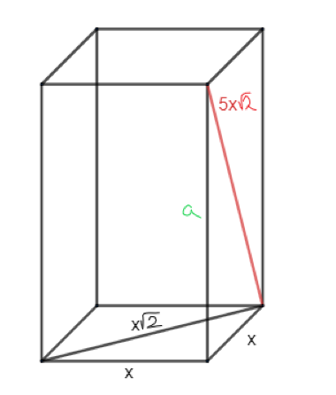 W graniastosłupie prawidłowym czworokątnym przekątna ściany bocznej ma długość, która jest 5 razy większa od przekątnej podstawy. Oblicz, ile razy krawędź boczna jest dłuższa od krawędzi podstawy tej bryły.