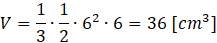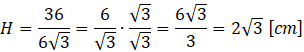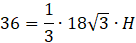 Zacznij od obliczenia objętości ostrosłupa w położeniu I. Kolejno wiedząc, że jego objętość jest taka sama w położeniu II, wyznacz długość wysokości w położeniu II.