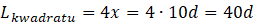 x – długość boku kwadratu
