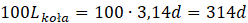 Przyjmij oznaczenia jak powyżej. Zauważ, że obwód 100 kół jest