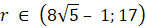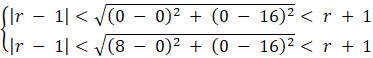 Szukany promień r (r > 1) powinien spełniać nierówności: