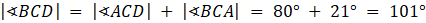 Dany jest czworokąt ABCD oblicz miarę kąta BCD jeśli poprowadzona przekątna AC podzieliła go na dwa różne trójkąty.