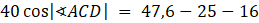 Skorzystaj z twierdzenia cosinusów aby wyznaczyć miarę kąta ACD
