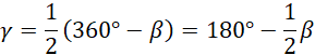 Z tego, że kąty wpisane oparte na tym samym łuku co kąty środkowe mają dwa razy mniejszą miarę oraz z kątów przyległych: