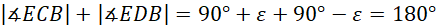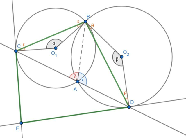Ponieważ sumy miar kątów w czworokącie CBDE są równe