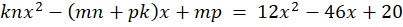 Wymnóż nawiasy i zredukuj wyrazy podobne po lewej stronie równania. Aby równanie było spełnione dla wszystkich liczb rzeczywistych x, współczynniki przy każdej potędze x oraz wyraz wolny po obu stronach równania muszą być takie same. Zapisz odpowiedni układów równań i znajdź liczby całkowite, które go spełniają. Poszukiwania zacznij od pierwszego równania, przyjmij pewne dzielniki 12 jako k i n i sprawdź, czy istnieje takie rozwiązanie całego układu. Jeśli nie, spróbuj z innymi dzielnikami 12.