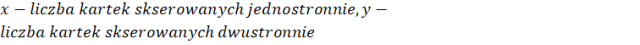 Z jednej kartki skserowanej dwustronnie otrzymujemy dwie kartki skserowane jednostronnie, zatem: