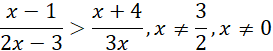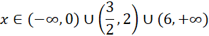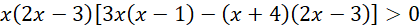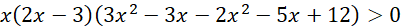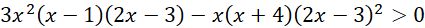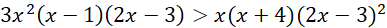 W pierwszej kolejności odrzucamy wszystkie argumenty, dla których mianowniki naszych funkcji się zerują. Następnie przemnażamy przez kwadraty mianowników, aby znak nierówności pozostał bez mian, warto dodać, że mnożymy przez 3 nie przez 9, gdyż jest to liczb dodatnia. Grupujemy wyrazy, wyciągając przed nawias wspólny czynnik i rozkładamy przy pomocy wzorów trójmian kwadratowy, szkicujemy wykres i zaznaczamy odpowiedni przedział liczbowy.