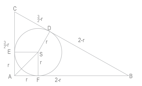 Zauważ, że czworokąt AFSE jest kwadratem, wtedy odległość między środkiem okręgu a wierzchołkiem kąta prostego jest przekątną kwadratu o boku