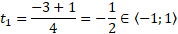 . Teraz użyj zmiennej pomocniczej t – pamiętaj o zapisaniu zbioru rozwiązań. Rozwiąż równanie kwadratowe – oblicz wyróżnik trójmianu i pierwiastki. Sprawdź, czy pierwiastki należą do zbioru rozwiązań t. Oblicz