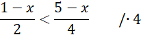 Wyznacz rozwiązania każdej z podanych nierówności, aby to zrobić całą pierwszą nierówność pomnóż przez najmniejszą wspólną wielokrotność liczb znajdujących się w mianownikach ułamków, przenieś wszystkie liczby z