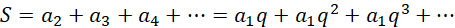 Zauważ, że suma wszystkich wyrazów następujących po pierwszym wyrazie ma iloraz równy ilorazowi ciągu, lecz zaczyna się dopiero od 2 wyrazu.