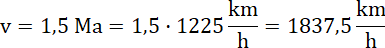 Pamiętaj, droga to iloczyn prędkości i czasu. Żeby wykonać mnożenie, jednostki muszą sobie odpowiadać, czyli należy zamienić prędkość w machach na kilometry na godzinę: skoro 1 Ma to 1225