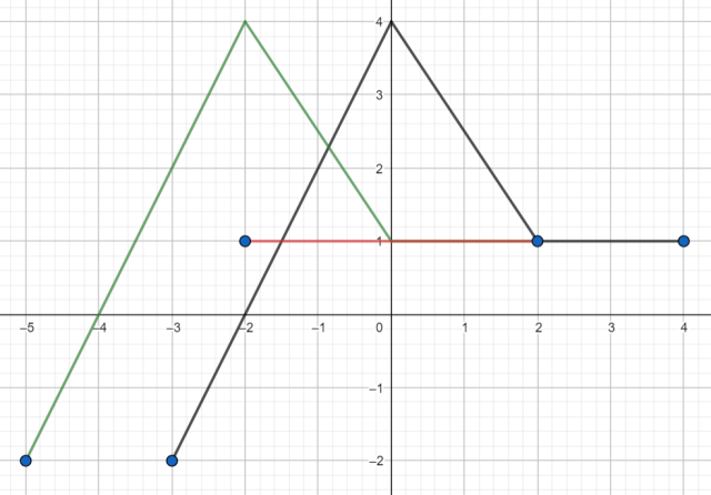 Aby naszkicować wykres danej funkcji, przesuń wykres funkcji f o wektor [-2, 0] – kolor zielony. (y = f(x + 2))