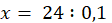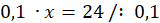 Aby obliczyć wartość x, należy podzielić 24 przez 0,1: